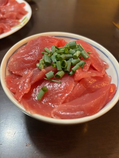 スタッフUが釣ったキハダマグロの中落を使って、「キハダマグロ丼」を作ってみました。