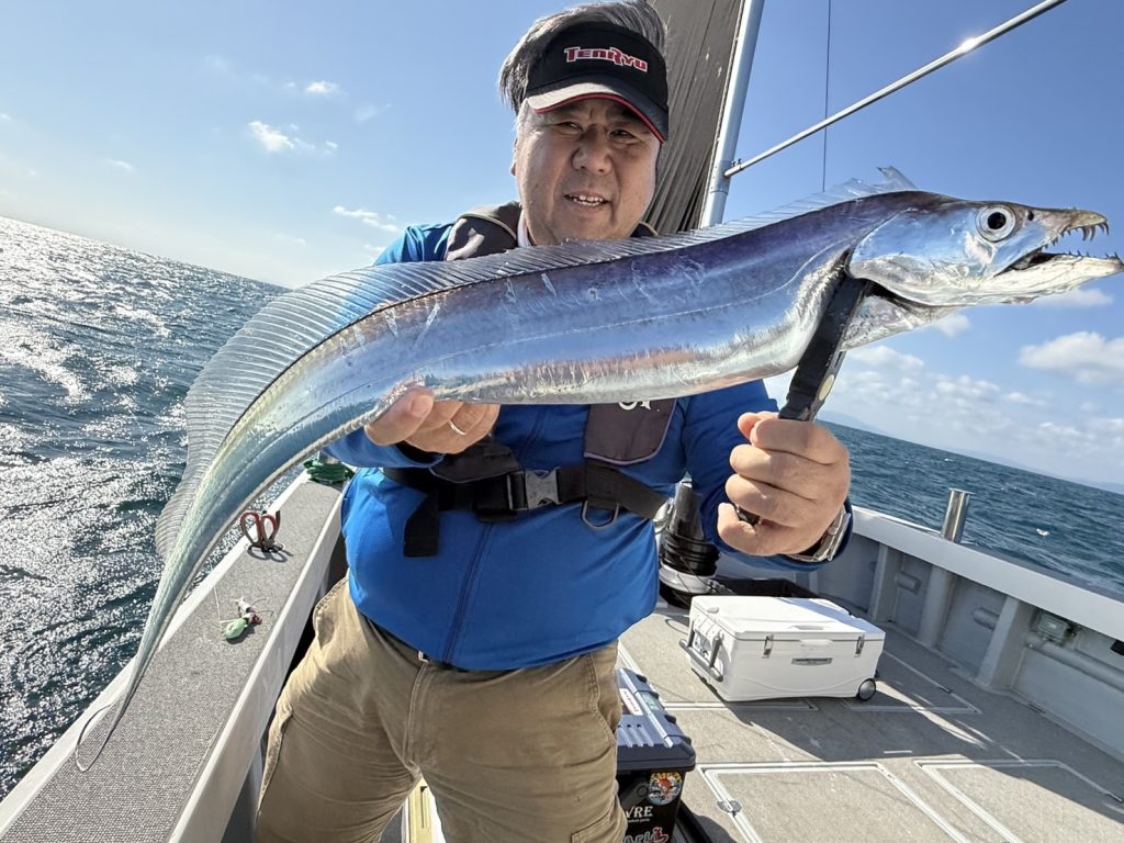 太刀魚の天ぷら あなたのつりグルメ 2025.12.02 愛媛県のUWAKAZE(溝脇船長)で太刀魚をテンヤで狙ってきました。太刀魚のしっぽ付近の身を使って天ぷらを作ってみました。ホクホクの天ぷらを無言で食べる息子たちに、嫌いな魚料理は無いようです。 ■食材太刀魚 投稿者スタッフM 様